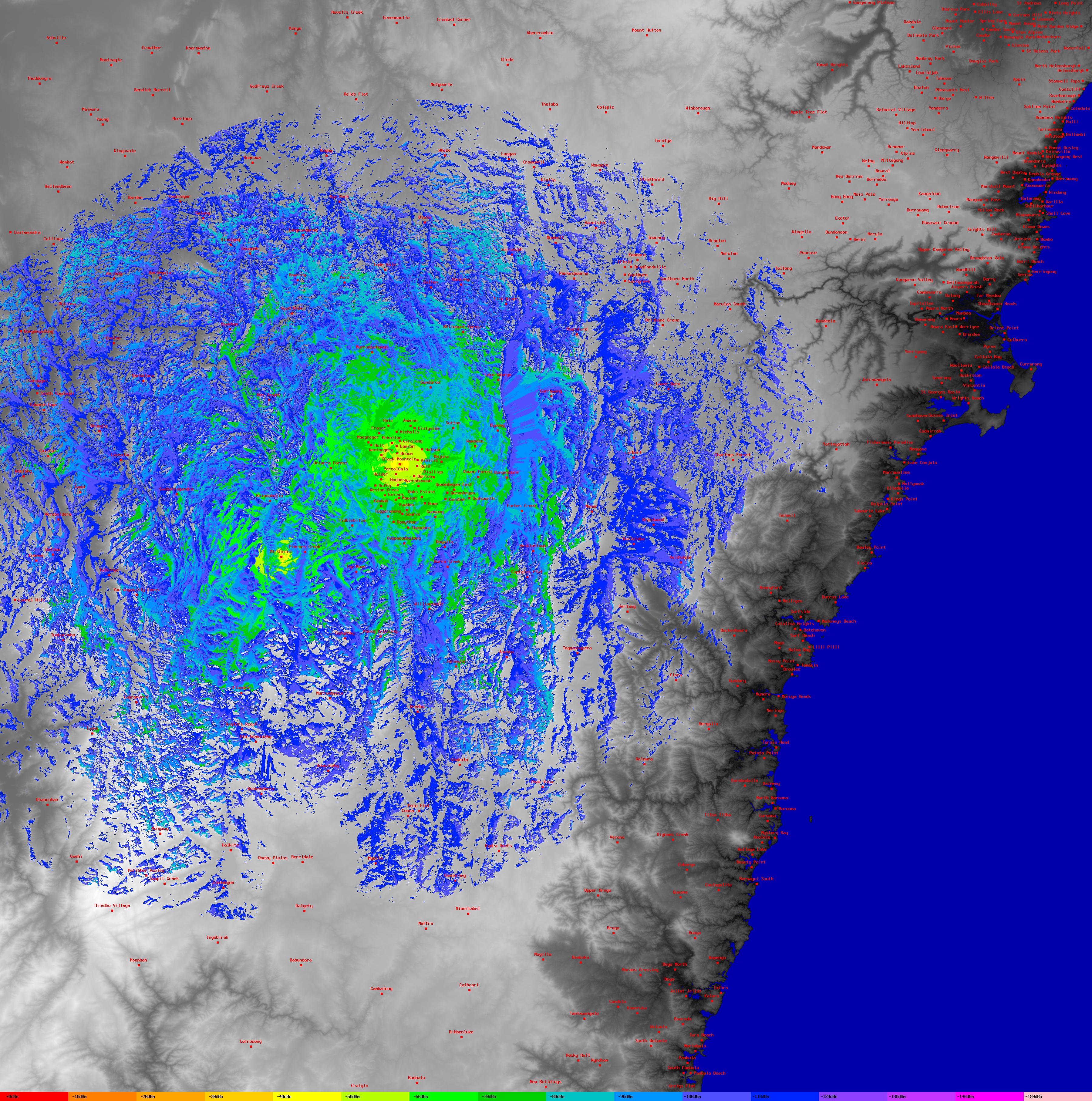 On this page are a few plots of coverage of some of the VK1 repeaters.