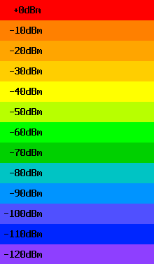 The plots show predicted receive signal strength down to -110dbm for a basic antenna at a height of 2m. Look across the bottom of the images for the key.
